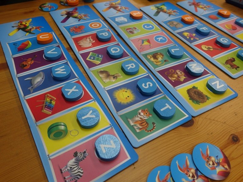 シンプリーファン出版のクニツィアの子供ゲーム。英語のアルファベットを学ぶためのゲームです。ボードは5枚に分かれていて、それぞれのアルファベットを頭文字とする物が描かれています。手番には袋からアルファベットの文字を引いてそれをボードの合致する場所に配置し、対応するものの名前を言うだけです。ボードの最後のアルファベットを配置するとルービーのマーカーがもらえ、このマーカーを多く取った方が勝利します。