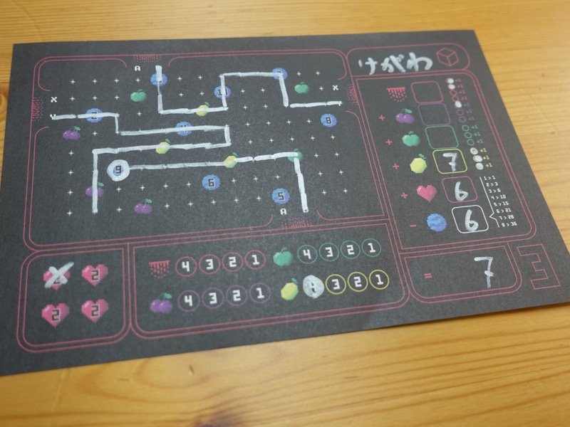 最近よく遊んでいる紙ペンゲームです。「マイアイランド」や「マイシティロールアンドダイス」を一緒に遊んだメンバーなので大丈夫だろうと思い、ハードモードを選択。やはりかーんさんはこういうパズルゲームに強く、1位でした。自分はなんとか全部埋め切ったものの3位。