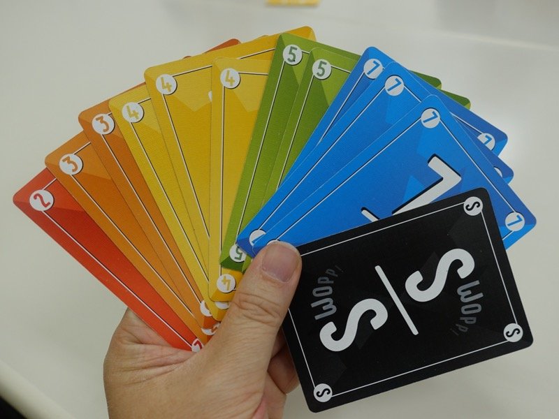 持参したゲームの中から、プレイ時間と人数に合致するものということで「リカーーーリング」のドイツ語版である「スウォップ!」を遊びました。5人での個人プレイです。1−3ディールではそれぞれ、ひだりさん、一味さん、うきんさんがカードをなくすことに成功してあがりました。ちょっと久し振りに遊ぶのですが、やっぱり面白い。