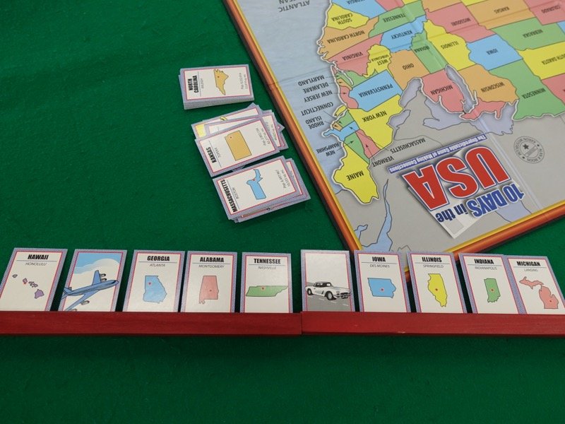 最近、再びよく遊ぶようになった「10デイズ」です。4人プレイは久し振り。飛行機と車を活用して、ハワイからミシガンまでの旅行を完成させて勝利しました。