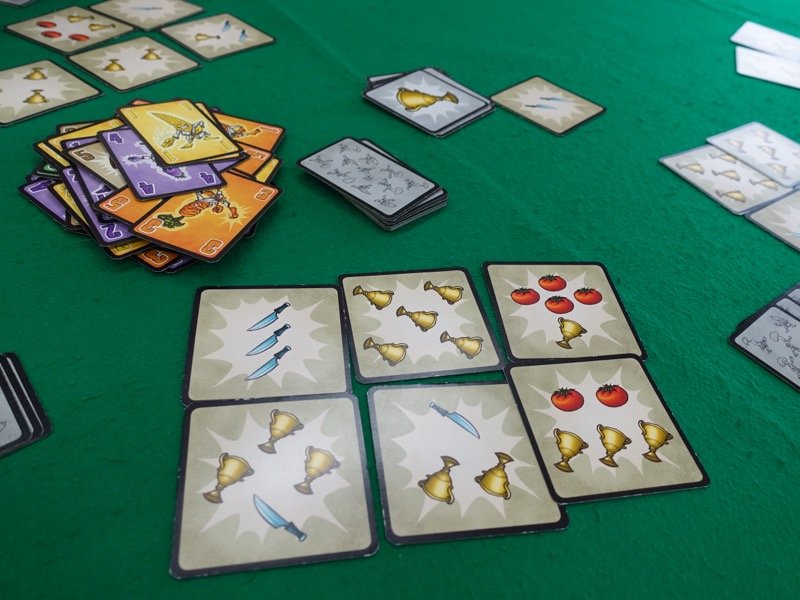 早く出し切った人先着2名で2点と1点になり、何ディールか遊んで既定点数達成を目指します。手軽で遊びやすいと思います。