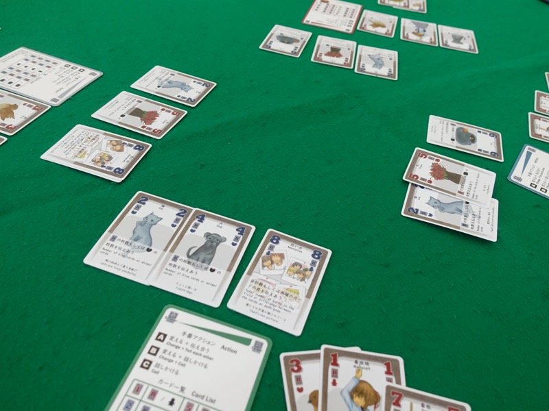 kobaさんとは通常のゲームを一緒に遊べませんでしたが、テストプレイをしたりトリックテイクの「スカート」を教えたりしました。次回は11月の予定です。エッセンの新作がを遊ぶ予定です。