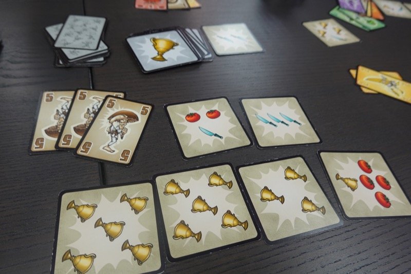 基本的なルールは難しくないのですが、付随する特殊カードや特殊効果が結構大変です。また、手札にメインディッシュがないとスタートプレイヤーになった時にどうしようもなかったりなど、昔のゲームっぽい荒さがあります。テーマが奇抜なので、そのあたりで愛好者がいるようですね。