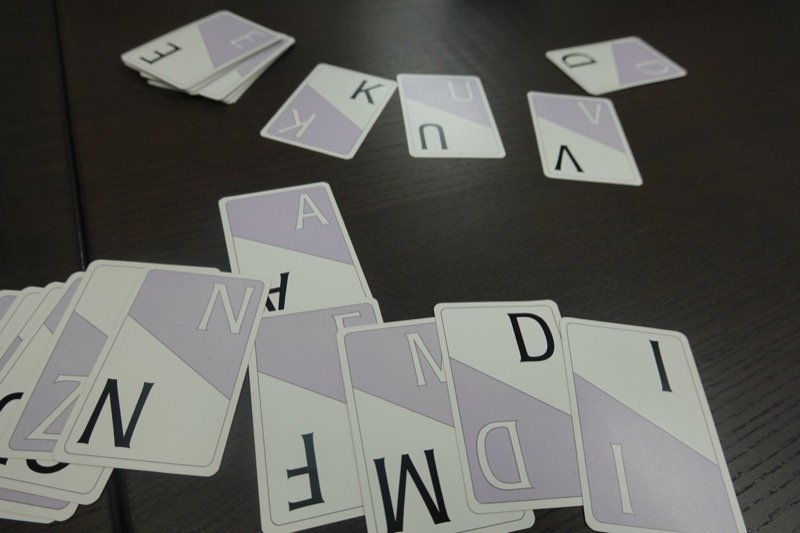 最後に少し余った時間で、クニツィアの「マイワード」を遊びました。単語力だけで無くひらめきも必要です。2文字のカードが結構難しいので、場合によってはこれらを抜くか「マイワードジュニア」を遊ぶと良いかも。