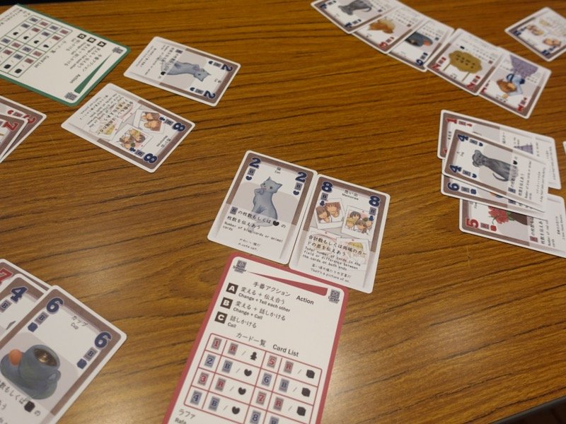 kobaさんとは通常のゲームを一緒に遊べませんでしたが、テストプレイをしたりトリックテイクの「スカート」を教えたりしました。次回は11月の予定です。エッセンの新作がを遊ぶ予定です。