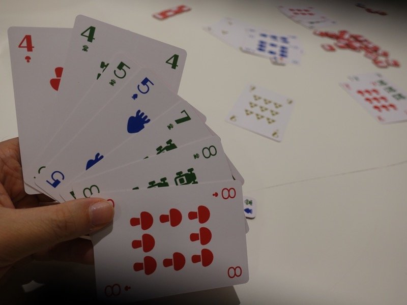 早く出し切った人先着2名で2点と1点になり、何ディールか遊んで既定点数達成を目指します。手軽で遊びやすいと思います。