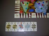 途中で手札中1枚しか使えない状況(残り2枚は別々のワイルドとしてしか使えなくなったカード)で使うと相手に枢機卿をおかれてしまうという不利な場面があって、珍しくカードを捨てて場から取る、ということをしました。殆ど忘れかけていたルールですが、ルールが存在するからには使う場面もあるのですね。でもきちんと確認しなかったので、2枚捨てて2枚取ってしまいました(本当は1枚捨てて1枚取る)。まあいいか。