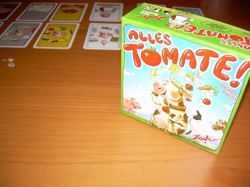 クニツィアのリアルタイムゲーム第2弾。パターンマッチングのゲームです。カードには超能力の透視テストに使うような図形が描かれています。カードは5種5色が6枚ずつの150枚。各自33枚をデッキとして持ちます。残りのカードから場の中央に3枚カードを表にして置き、手番プレイヤーが自分のデッキのカードをめくり始めたらラウンド開始。各プレイヤーは一斉に自分のデッキのカードを3枚めくり、場のカードのそれぞれと形か色が合うように並べます。「トップ」と宣言してそのプレイヤーのデッキは3枚少なくなるのです。また完全一致があれば「マッチ」と言って上に重ねて捨てる事も出来ます。10枚未満になったら「トッポ」と宣言して終了。他のプレイヤーは残ったカードがペナルティとなります。悪くはないのですが、なにか欠けているような印象を受けました。ここでもスピードゲームが得意なショーンの勝利。