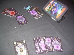 持参したポイズン。アミーゴの新バージョンで、写真のようなチャック付きのポーチに入っています。アミーゴのカードの箱サイズより一回り大きいのですが、乱暴に扱っても大丈夫なのでどこかに持っていくには適していると思います。このポーチシリーズはかなりの数が出ており、そのうち日本にも輸入されるかもしれません。