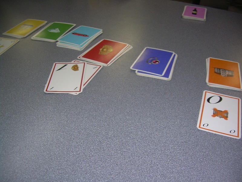 先週の水曜日の会でコンテナがやりたいと言っていたら、ユリチョフさんが持ってきてくれました。コンテナをプレイ人数の3倍使うショートゲームです。今回は積極的に競りに勝ちにいき、最後にはコンテナの価値ではトップでしたが現金が20しか残らずに最下位になってしまいました。終始みんなのノリが良く、商売ゲームの楽しさを素で味わうことができました。写真は杉山さんが出荷した白黒荷物の船。