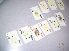 4:このとき、同位札4枚揃ったら捨てる。よってゲームは収束に向かう。ただしゲームの最初に1枚を極秘裏に抜いておくので最後にどうしても揃わない札もある。