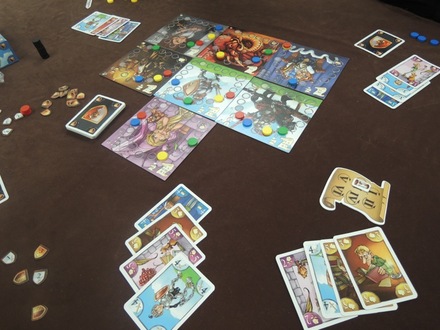 エッセンでコンポーネントに魅かれて買ってしまった競りゲームです。かなり大味なのですが、おまけでついてきたハンマーなどもあり、ツエツキさんの息子のミニツエツキ君がいたくこのハンマーを気に入っていました。今度このハンマーとそれを叩く木製の円盤を他の競りゲームに使うと雰囲気が出るかもしれませんね。かなりの数のコンテナを競り落としたミニツエツキ君の勝利。自分やイズナさんはお金を使い過ぎました。