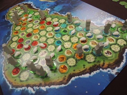 まずは今年のエッセンで最も面白いと思われる「オロンゴ」です。これで通算3&4回目ですが、ついに初勝利を飾ることができました。陣取りの要素も競りと同じくらい大切ですね。