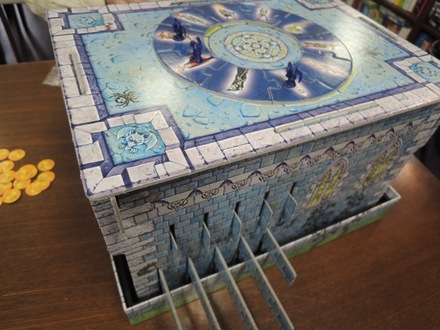 すごいのが除去するときのギミックです。斜めに立てかけられたボードに指でコマを押して落とすのです。結構大きい音がします。落ちたコマはボード裏側のを伝って落ちてきます。プラスチックでなければできない技ですね。ゲームとしてもなかなか面白く、2回遊びました。それにしてもこのギミックは凄い!