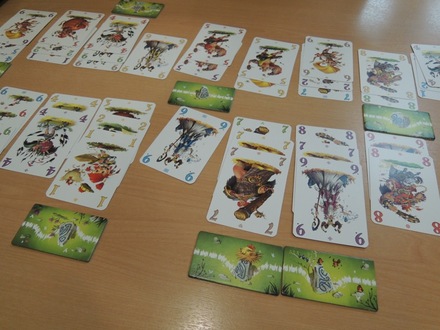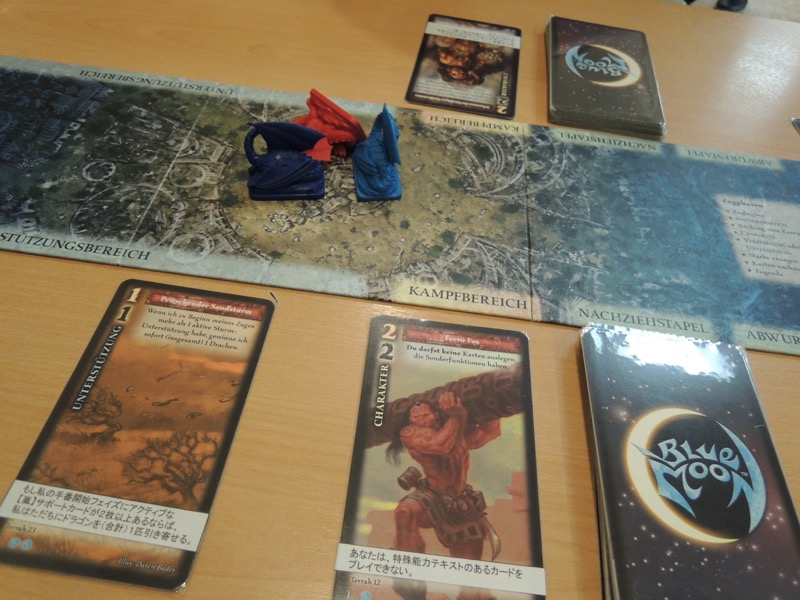 ようやく手に入れたリュテスで初プレイ、通算2回目です。よくある同時プロットバッティングのゲームなのですが、プロットした後に賄賂を乗せられるというのが非常に面白いです。3人だったので場には6枚のカードが並べられます。3人だと4人ほどプレイヤー間の絡みはなく、賄賂もみんな少なめです。最高でも賄賂は2コインだったと思います。そんななか、剣をたくさん集めて剣のボーナスで大量得点を得た自分が勝ちました。あとでカード構成を調べると、割とすっきりした構成なのですね。以前usalapbitさん所有のものを遊んだ時には犬のカードがありましたが、自分のものには何故か入っていなかったです。他のカードだけで枚数は足りているので、おそらくプロモカードなのではないかと思います。ギークにも情報がないのでなんとも言えませんが(情報求む!)