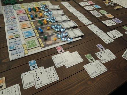 返事が遅くなりました。「貴族と高利貸」はなかなか楽しめました。これからブラッシュアップされるのが楽しみです。場からカードを買うのがかなり時間がかかり、ダウンタイムも長いため、手札にしたほうが良いのではと思った次第です。手札が規定枚数(5人貴族がいるので6枚以上はあったほうが良いと思いますが)あって、使った分だけ補充するという感じが良いのではないでしょうか。
