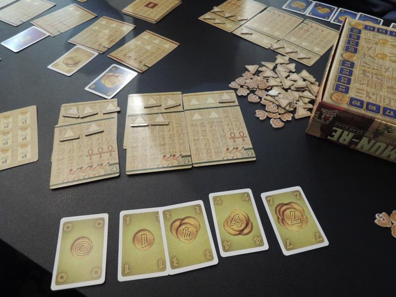 ここからシミーズさんとフジマキさんが加わって5人です。さすがにらくだは1回も機能しません。やはり0ビッドをする理由があまりなく、さらにピラミッド3つの魅力が勝るので、簡単に11を超えてしまいます。誰かが7−8位のカードをビッドすればほぼ確実です。この辺りが調整不足のゲームに思えてしまいます。そして調整不足な部分がクニツィアらしからぬ感じなのです。そのうち2人で遊んでみたいです。