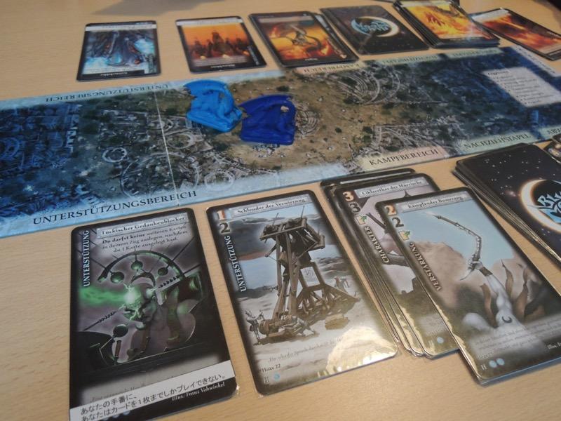 まずはオーソドックスな基本となるヴァルカ対ホークスを2戦遊びました。そのあとは自分が使ったデッキをえあんぬさんが担当し、えあんぬさんがまた見ていないデッキを自分が使う、というようにしてあと2戦遊びました。結果は2勝2敗です。どうもこの頃の自分は焦って勝負を急ぎすぎて負けてしまう傾向があるようです。写真はフリットの時の手札、0−0ばかり!