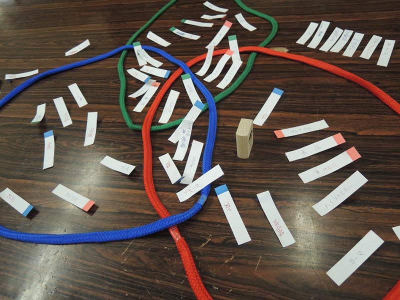 夜のゲームその2「百科審議官」です。蝶ネクタイとタイピンの違いなどに悩まされつつ、プラティニさんが1歩リードして勝利。今回は、坂元さんが「ポケットに入るもの」、プラティニさんが「4文字」、自分が「クニツィアに関係あるもの」というテーマでした。夜長にじっくり遊ぶのに最適ですね。