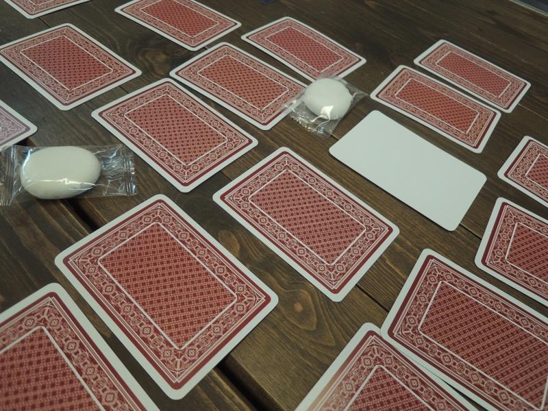 「紙神経衰弱」の拡張版で、紙の種類が半分になっており、こちらだけでも遊べます。わかりやすい紙質が多いということで入門編には適しているのではないでしょうか。今回は、おまけとしてもらったマシュマロと同じ触感の紙「マシュマロ」を当てるというゲームを行いました。勝利した、名人と一味さんがマシュマロを獲得。マシュマロってこんな触感だっけ、と考えさせられました。