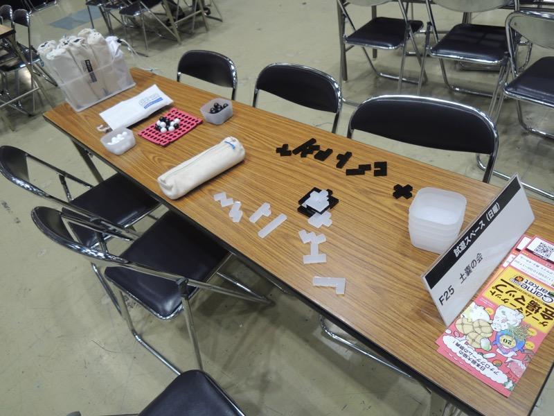 販売担当、デモプレイ担当、オートグラフ(サイン)担当(つまりネスター)など、土嚢の会のメンバーやネスターとの役割分担もうまくいきました。自分はデモプレイを担当していましたが、終始デモプレイのテーブルが賑わっていたのは嬉しい限りです。ほぼすべてのゲームでサンプルを用意し、デモプレイができるようにしたのは良かったと思います。やはりデモプレイは大切です。こうして地道ながらもアブストラクトゲームの楽しさを知ってくれる人が増えるのは素晴らしいですね。また来年に出展もできたら良いなあと思います。