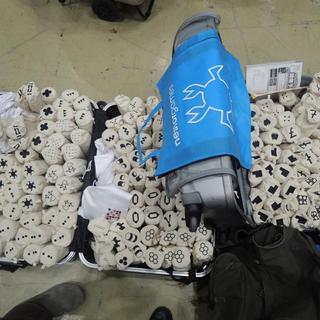 この日はいよいよ出展日です。「土嚢の会」として2回目の出展になります。去年は25種類だったのですが、今回はなんと33種類のゲームを準備しました。ネスターが来てくれるということもあり、なるべく彼が売りたいと思うゲームを中心に仕入れたのです。よって、33種類中23種類は主にネスター自身がデザインしたゲームです。