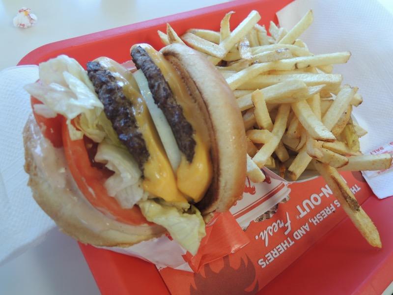 このあとは、リンカーンに連れられて、6人でクルマに乗って昼食と買い物です。この日が唯一会場を離れた日です。KdJ(ドイツ子供ゲーム賞)の審査員だというドイツから来た2人の提案で、in'n'outというカリフォルニア発のハンバーガーチェーンに行きました。名前は聞いたことがありますが、東部では見たことがないチェーンなので自分も初めてです。メニューはシンプルで3種類くらいしかなく、フレンチフライはじゃがいもそのままの味だとのこと。最初はこのフレンチフライに慣れませんでしたが、だんだん美味しくなってきました。