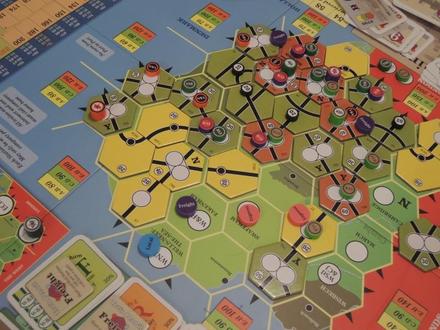 3:各会社は3種類の免許(普通、急行、貨物)のどれかを持ってスタートする。免許によって収益方法が異なる。免許は合併することによってのみ増え、同時に2種類以上の列車を走らせられる。また同じ路線を走らせることもできるが同じ都市は1回しか数えず、すべての路線が繋がっているように走らなければならない。そしてうち1路線は自分の本拠地を通らなければならない。