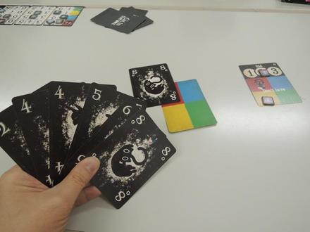 最後に、少し余った時間で話題のトリックテイク「キャットインザボックス」を2ディールだけ遊びました。いつでもボイドを宣言して切り札として出せるのは面白いですが、宣言したトリック数をパラドックスが起こる前に確定させなければなりません。やはりパラドックスは100%起こります。これが30%くらいになればゲームとしてもう少し楽しめる気がします。