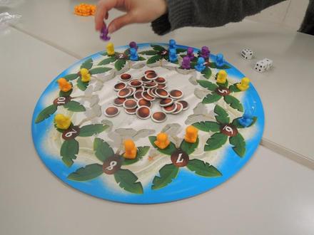 手軽で結構ゲーマー向けなダイスゲーム「ココナッツ島」です。最近勝率が高かったのですが、今回は序盤にリードしていたミロさんをマークしていたらMinaさんに出し抜かれてMinaさんの勝利。自分は場を荒らしただけで最下位でした。