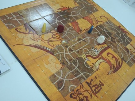 よく「インディゴ」と比較されるので気になっていたゲームです。ゲーム的にはかなり異なります。タイルは自分のコマの移動先にしか置けません。目的は自分のコマが外に出ないように、相手とぶつからないようにしながら、相手を手詰まりにすることです。それほど考えることはなく、置ける場所もどんどん狭くなるのであっという間にゲームが終わります。考え所がなさすぎてなんだかなあ。