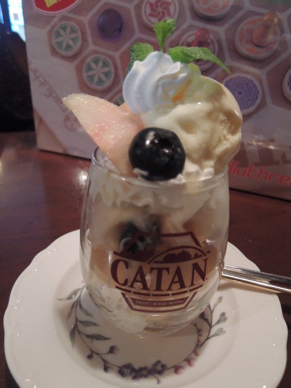第65回の土嚢の会は参加者10名。初参加のさぼさんとは残念ながら一緒に遊べませんでしたが、様々なゲームを遊べました。「ヴォロー」「アクロン」など30分くらいの中量級を中心に遊び、特に初プレイ同然の「オクティ」や、Kanare Abstractからの本格的アブストラクト「イアーゴ」が印象深かったです。写真はカタングラスに入った特製の桃のデザート。