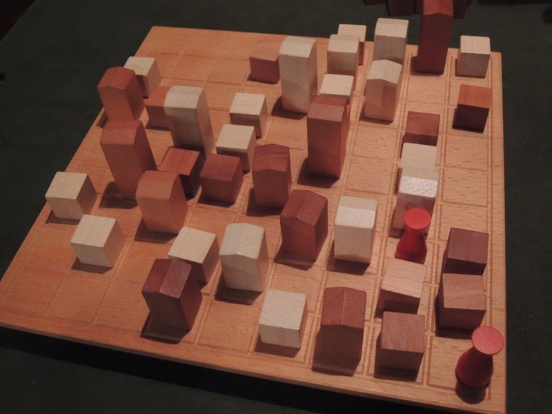 たっくんが未プレイだというので「ウルビーノ」を紹介を兼ねてプレイ。建築家のルールがやはり秀逸です。非常に好評で2回遊びました。2戦目は接戦の末敗北し、1勝1敗。ゲルハルトの木製ゲームはどれもかなり完成度が高いので、みんなに遊んで欲しいです。