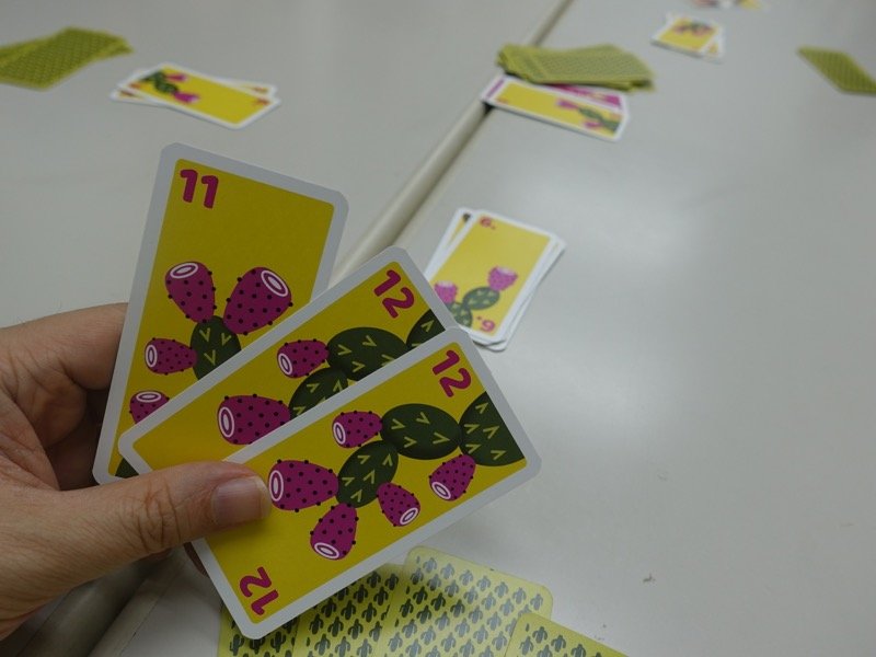 まずは自分が持ち込んだエッセンの新作「マダ」です。序盤でつまづいたもののそのあとは順調に得点を重ねていきました。やはりみんながバーストすれすれという展開は盛り上がります。キノさんがなんと22点という高得点で勝利。