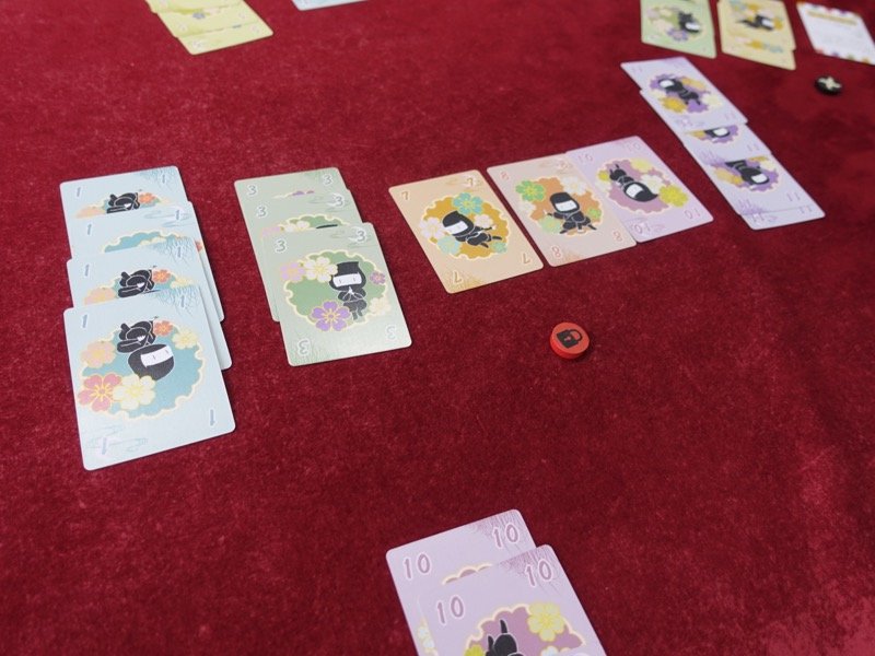 2日前に遊んだ「忍のがっこう」を再び遊びました。2回目なので大分コツがわかってきました。考え所も多くてすごく面白いのですが、出し切って勝ったときの5点は要らない気がします(なぜ5点?)。あるいは他のプレイヤーの失点を得点とするゼロサム方式の方が良かったのではと思います。次回は4人以上で遊んでみたい。