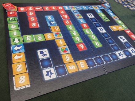 「カンガルー」の元になったゲームで、違いは色の数だけです。こちらは9色しかありません。なので覚えやすいかもしれません。後から気づきましたが、こちらのバージョンは4人までだったのですね。2戦遊びました。序盤から終盤の準備をする感じなプレイ感覚が「フォミュラーモーターレーシング」っぽいです。
