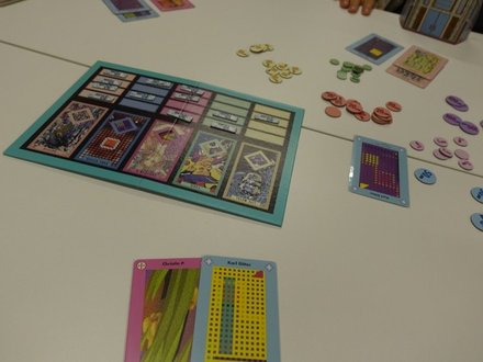 最後は「カスカデロ」です。4人だとボードはかなりキツくなり連結ボーナスを取るのが難しくなります。序盤は5色連結などいくつかのボーナスを首尾よく獲得していったのですが、後半になって失速しさいごはなべさんと同点。しかし、手番順というタイブレークで一応勝利しました。次回は裏面を遊んでみたい。