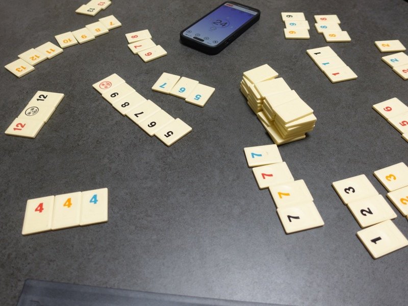 最後は手番1分制限の「ラミィキューブ」です。4人なので4ディール勝負、たまにしか遊ばないので、最初は頭が追いついていきませんでしたが、だんだん慣れてきて4ディール目には上がることができてプラス点になりました。組み換えが早解きパズルに近いのですが、それ以外にも色々と定石がありそうです。
