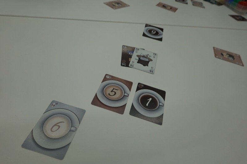 トリックでちょっと変わっているのはカフェラテはコーヒーとミルクを1枚ずつ出しても良いということです。これにより最大数値30のカフェラテが可能になります。マストフォローですが、カフェラテでリードの時にカフェラテカードがなければコーヒーとミルクを出してフォローする義務はありません。
