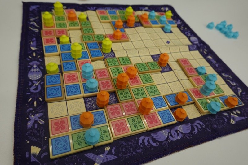 ここで3人になり、「秦」のリメイクの「ガゼボ」です。今回は一番基本的だと思われる「ガゼボの庭」を遊びました。手軽な陣取りとしては適度に他のプレイヤーの領地の乗っ取りやパティオの争いがあって、かなり好みです。「秦」を持っていても、かなり手が加えられているので「ガゼボ」も手にいれる価値があると思います。