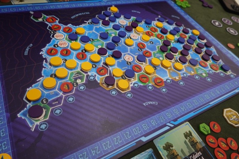 3人がベストのゲームということで持ち込んだ「エイリアンアタックUSA」です。少々視認性が悪い以外は運と思考のバランスも良くてよくできています。今回はメキシコ国境と2の都市を担当したピザさんの勝利。ねいじまさんが20点のミッションを唯一達成できずに最終的には差が開いてしまいましたが、もし達成していれば割と僅差だったと思われます。このゲーム、ブラジルだけではもったいないのでぜひ英語版やドイツ語版を出してほしいものです。
