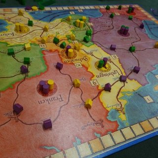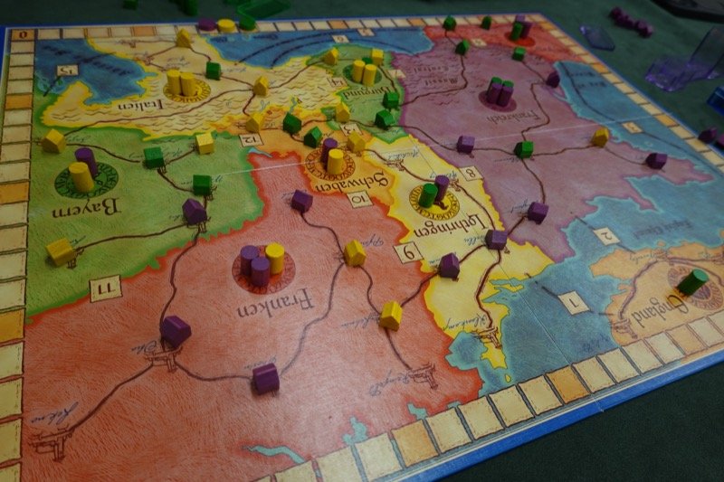 3人ゲームの代名詞と言われた「王と枢機卿」を久し振りに遊びました。自分が持ち込んだのですが、カードなどが既に3人用にセットアップされていました。今回自分はフランスに関わらずに南東部を主に戦っていたのですが、配置した枢機卿を無駄にさせられてしまい、ねいじまさんに一本取られました。やっぱり面白いですね。4人でも結構好きなのですが、あまりそういう意見はないのかな? 5人は流石に多すぎですが。