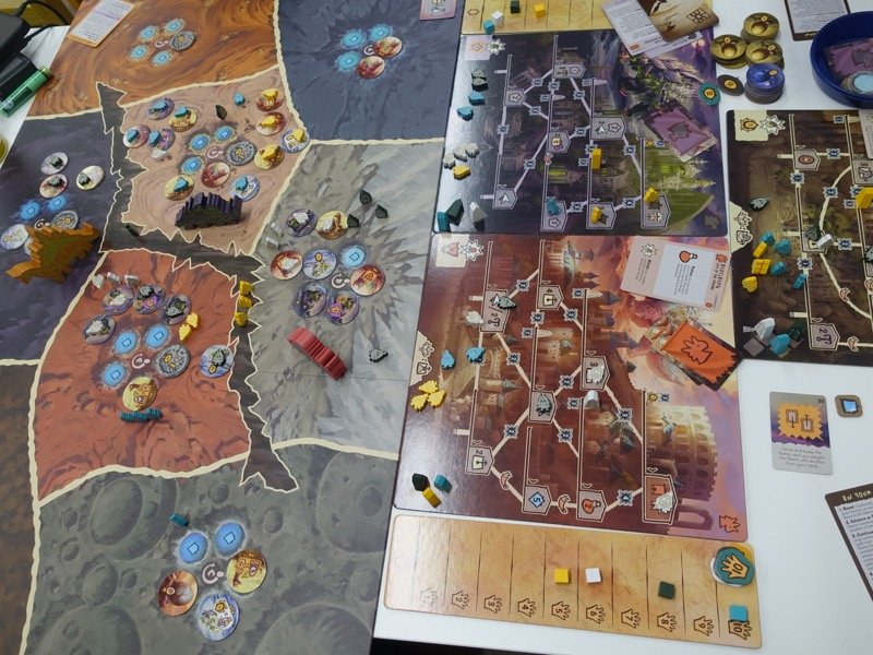 この日のメインディッシュ。シュピールのノベルティーショーでホビージャパンの隣りのブースに展示されていたゲームです。その時に説明されたときにはもうちょっと気軽なゲームだと思っていたのですが、遊んでみるとかなり複雑で全く得点の見通しが立たないゲームでした。