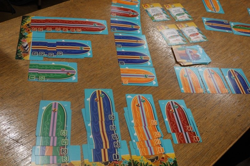 このゲーム、自分はつい欲張ってしまうことが多くてあまり勝ったことがありません。今回は4種のサーフボードを作るという目的に固執してしまい、最下位でした。まだ追加のプロモパックは使ったことがないので、次回は使ってみたいですね。