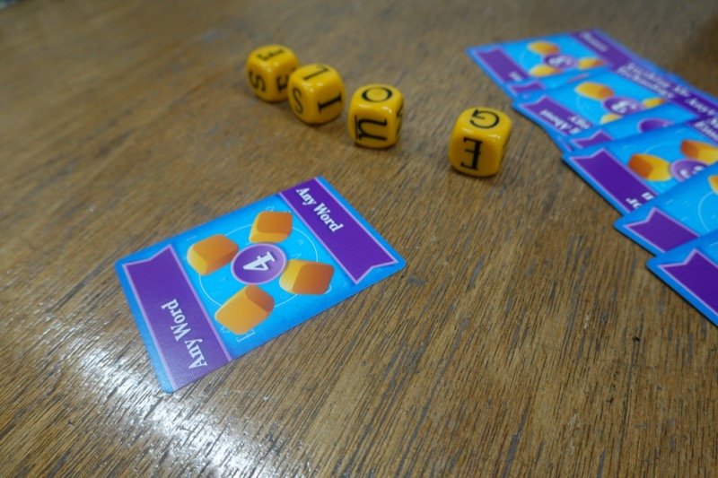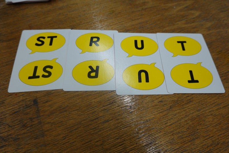 最後に少し余った時間で、クニツィアの「マイワード」を遊びました。単語力だけで無くひらめきも必要です。2文字のカードが結構難しいので、場合によってはこれらを抜くか「マイワードジュニア」を遊ぶと良いかも。