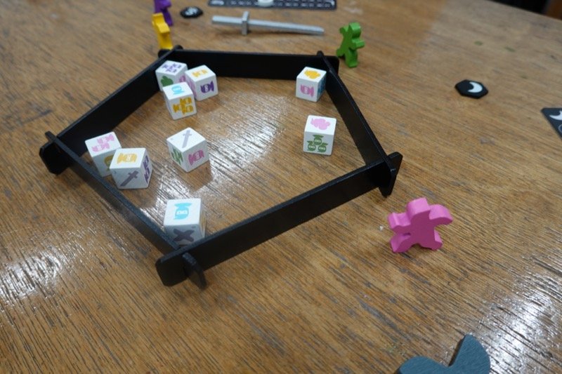 この日の初プレイのひとつでエッセンの新作です。この前に別のテーブルでも立っていて、ぴーかんさんが勝ったみたいです。既に日本にも入っているようですね。6人で遊ぶと良いのかも。