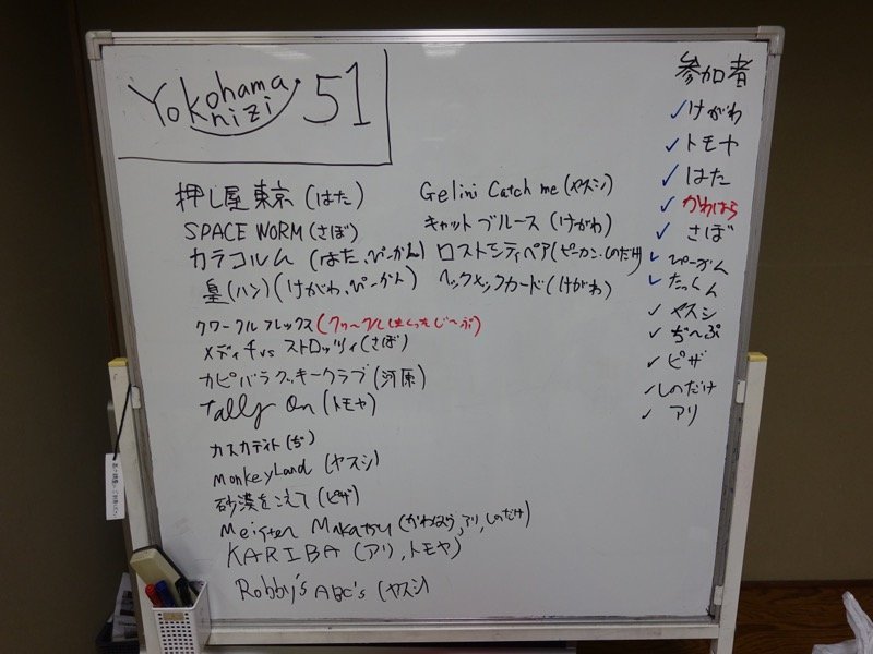 最近よく遊ぶ紙ペンゲームを持ち込みました。今回はハードモードでプレイ。このメンバーはさすがみんな強いです。自分は1x1のブロックを取りすぎて、あまり埋まらなくなってしまい大失敗で最下位でした。
