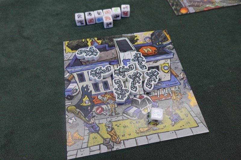 前回は2人で遊んだ「ゾンビマニア!」を今度は4人で遊びました。1戦目は滞りなく終わったのですが、2戦目は膠着してしまい、最後は1匹のゾンビがぐるぐると回るという展開になってしまいました。1匹しかないと勝つためにはそれを次のプレイヤーに回さなければならないのですが、そのために必要なのは墓2個、家2個といずれかのゾンビのペアということで、思ったよりも簡単に達成できてしまうのです。3巡ほど同じ状態が続いたので競技終了としました。